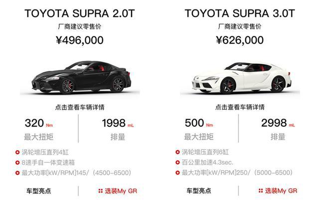 近日,丰田汽车品牌旗下全新跑车Supra正式宣布上市,新车此次推出两款车型,分别搭载2.0T发动机和3.0T发动机,官方指导售价为49.6万元和62.6万元。