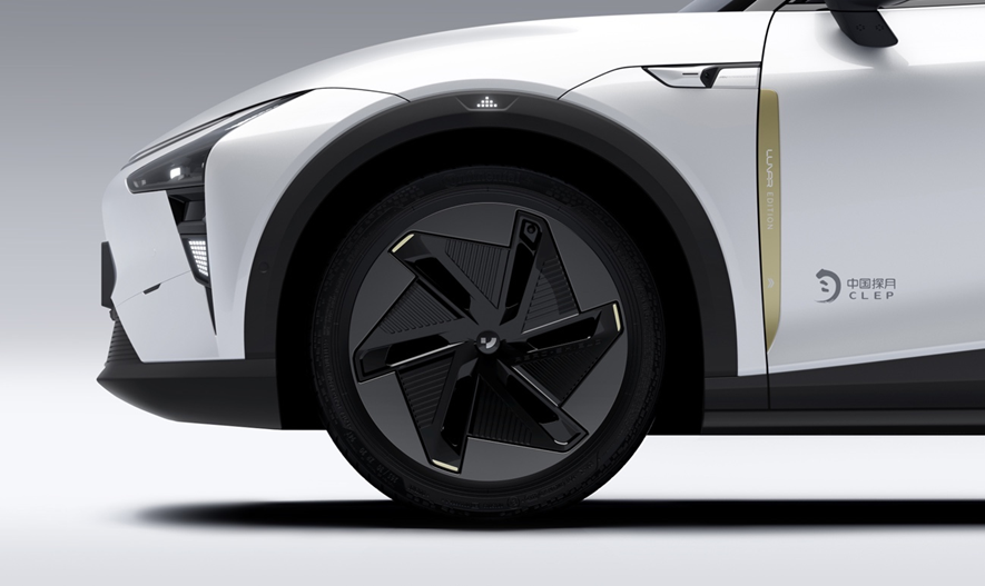 星瓷白作为“月色皮肤”的专属车身颜色,“中国探月”LOGO标识增强了限定版的独特性,采用探月航天器专属金色喷漆,配有“LUNAR EDITION”图标丝印,多层清漆工艺。21英寸空气动力学轮毂上融合探月元素,细节之处体现质感与美感。