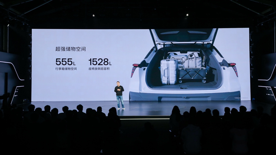 ROBO-01探月限定版有着同级别领先的整车参数和空间表现。车身长4853mm/宽1990mm/高1611mm,轴距长达3000mm,在实现动感姿态的同时提供舒适的内饰空间。后备箱储物空间高达555L,后排座椅放倒后将拥有1528L纯平拓展储物空间。