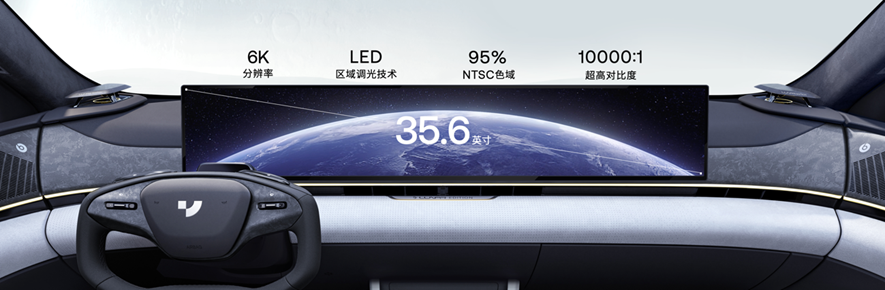 35.6英寸6K超清一体屏,不割裂、不遮挡、不拼接,拥有95%NTSC高色域和10000:1超高对比度,是最具未来感的3D无界一体化大屏。超清一体屏作为整车AI感应式交互入口,能够提供最佳的沉浸式3D视觉HMI和娱乐体验。后排配备7英寸交互显示屏,给用户带来第三生活空间的客舱关怀。
