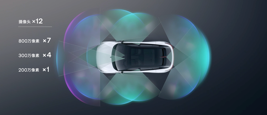 在12个高清摄像头中,有7个800万像素、4个300万像素、1个200万像素,充分满足不同复杂场景下的视觉感知需求。