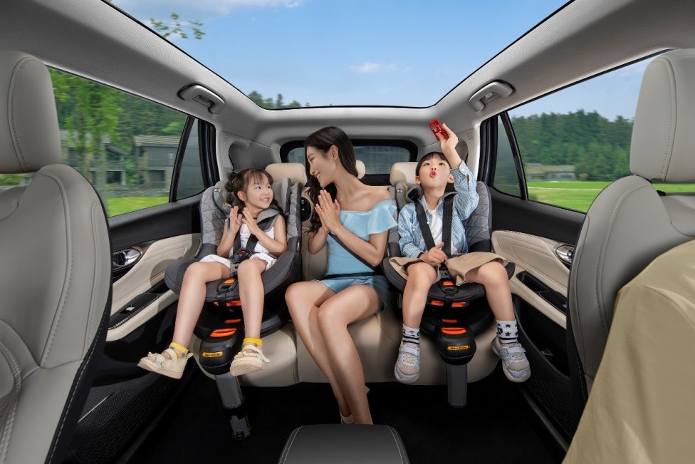 二胎家庭日益增多,面对后排加装的2个儿童座椅,谁说父母只能“望座兴叹”?得益于AEP纯电专属平台,2024款AION V Plus拥有2830mm夸张轴距,车宽1920mm,形成超大后排空间,加上全纯平的地台,妈妈也能轻松上下车,舒服坐在两个儿童座椅中间,很方便地照顾宝宝。