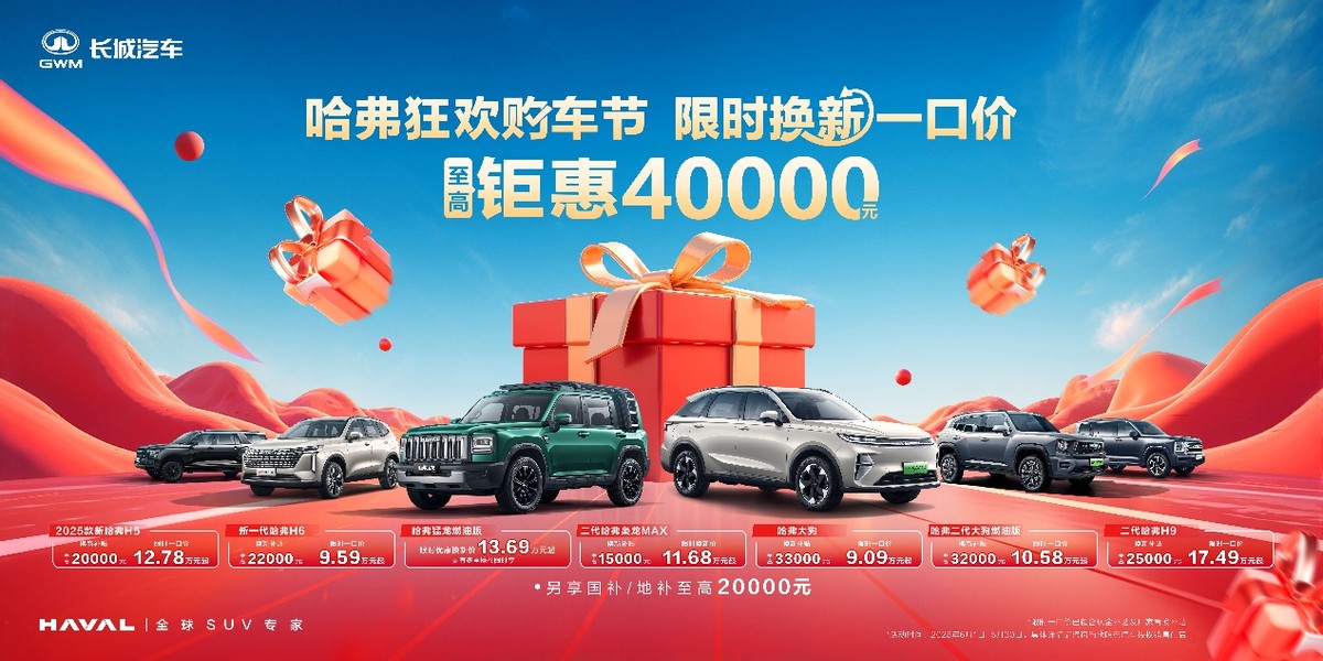 - 全系钜惠: 哈弗全系狂欢购车节,限时焕新一口价活动至高钜惠40000元